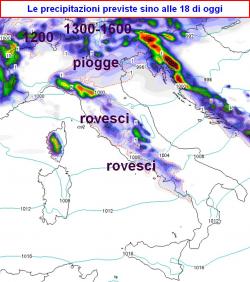 SITUAZIONE: una veloce perturbazione sta attraversando il Paese mostrandosi più attiva su Alpi, nord-est e regioni tirreniche. Essa è accompagnata da venti forti dapprima sud occidentali, poi in rotazione a WNW con mareggiate lungo le coste esposte.