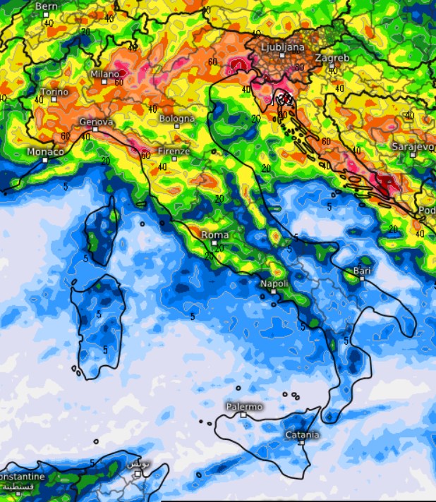 La perturbazione non risparmierà le regioni centrali: piogge e rovesci, anche temporaleschi, interesseranno soprattutto la Toscana (specie l’alta Toscana), tra pomeriggio e sera, mentre fenomeni più deboli e irregolari bagneranno Umbria, Lazio, Marche e Abruzzo.