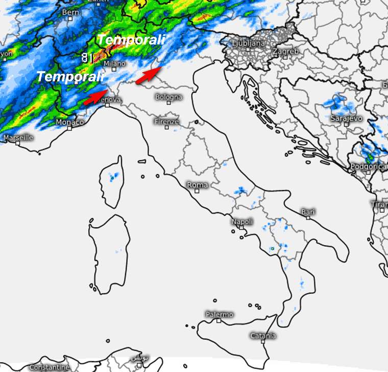 Questa situazione ci terrà compagnia per le prossime 36-48 ore, quando saranno probabili temporali anche di forte intensità sui settori più settentrionali del nord (quindi NON su tutto il nord Italia), principalmente lungo i rilievi.