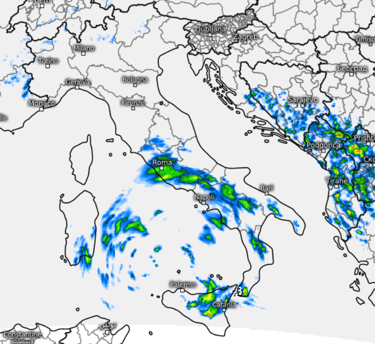Ancora rischio di temporali su alcune regioni italiane nelle prossime 36-48 ore stante la presenza di una goccia fredda nei pressi dell'Italia.