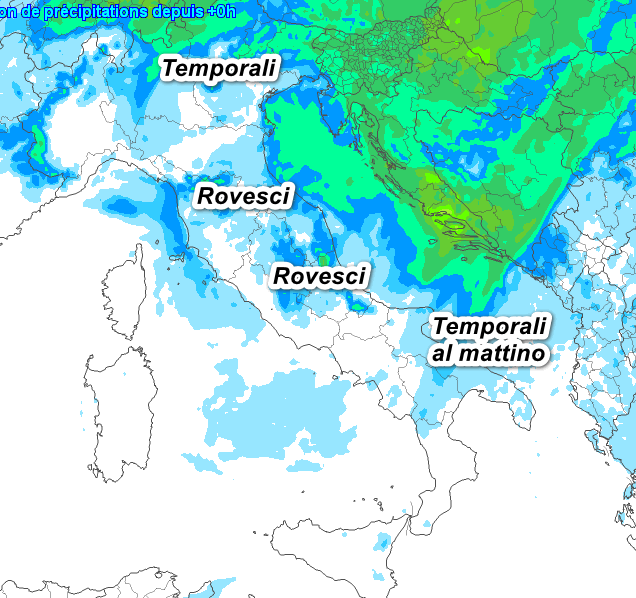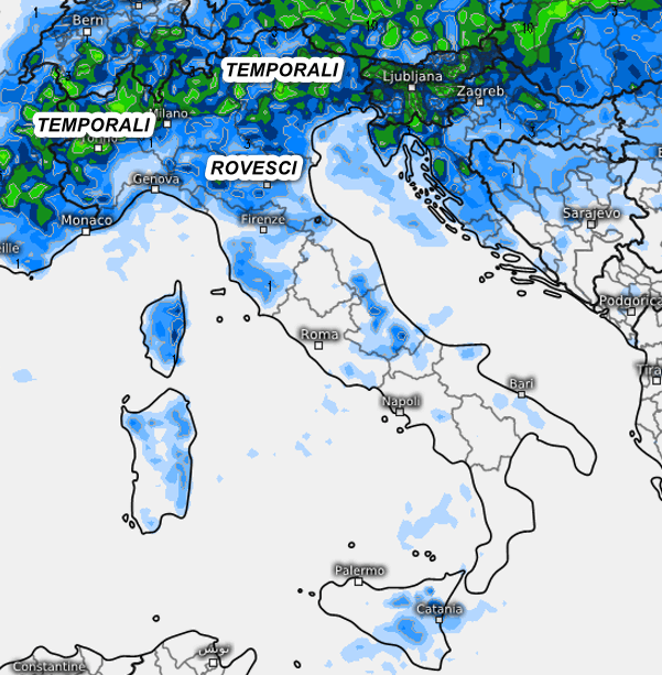 Passiamo ora al quadro delle precipitazioni previste oggi sul nostro Paese fino alla mezzanotte prossima: