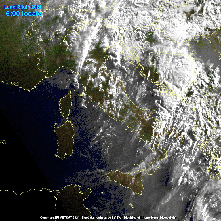 Vediamo subito l’immagine satellitare in movimento che mostra la situazione in Italia nelle ultime ore: