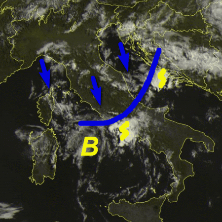 Come era nelle attese, l’elemento perturbato si è spostato verso sud-est ed ora agisce sulle regioni centrali. Già sono presenti temporali tra il basso Lazio e la Campania, ma non appena si accenderà la lampadina del sole, l’energia termica fornita farà letteralmente "esplodere" nel pomeriggio tutto l’Appennino centro-meridionale con temporali anche di intensità notevole!