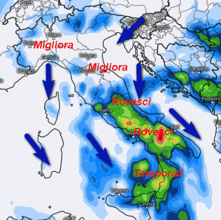Sabato temporalesco specie nelle aree interne del centro e del meridione. Domenica bello quasi ovunque.