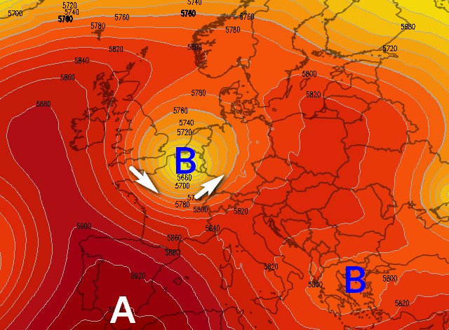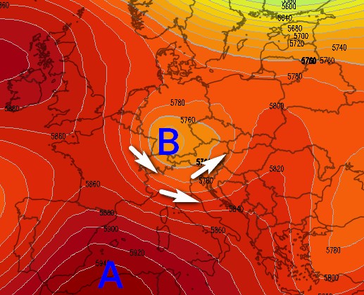 Ecco la posizione prevista del vortice a 5500m per la mattinata di sabato 16 agosto: