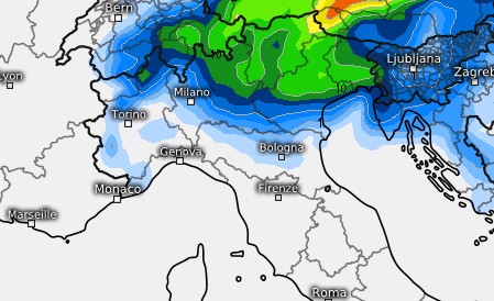 Il movimento del vortice risulterebbe lento e andrebbe a coinvolgere ancora l’arco alpino sino a martedì 19, per poi sfondare in Adriatico entro il 20; ecco infatti le precipitazioni previste sul Triveneto e subito sotto lo spostamento del vortice verso i Balcani: