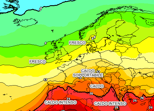 Per un cambiamento più sostanziale, dovremo attendere l’inizio di luglio. Le proiezioni sulle temperature a 1500 metri in Europa per le ore centrali di mercoledì 2 luglio ci offrono uno spiraglio di speranza.