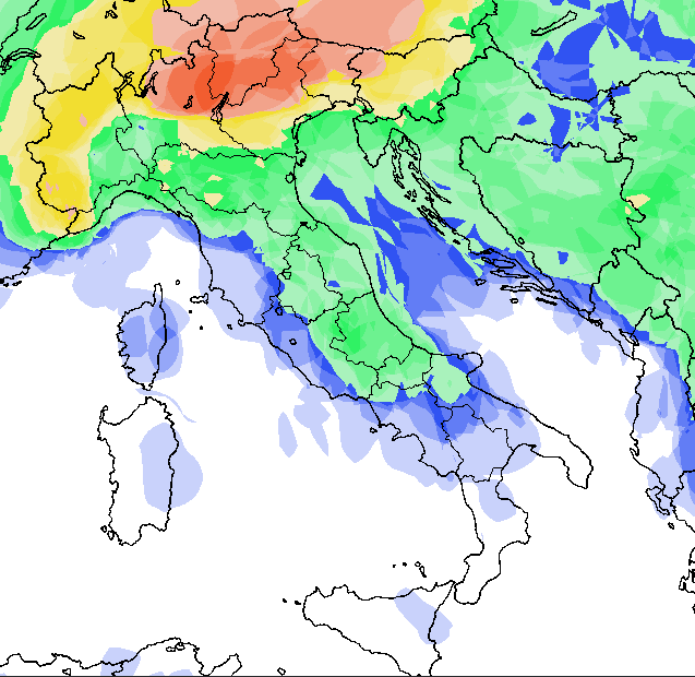 Notiamo come la massima probabilità di temporali si concentri sui settori alpini e prealpini centro-orientali e sulle alte pianure. Tuttavia, una buona parte del Settentrione e del Centro potrebbe avere una probabilità media di vedere qualche bel temporale rinfrescante, che finalmente porterà un po’ di sollievo dall’afa. Su tutte le altre zone del Paese, il rischio di temporali si manterrà basso, se non addirittura nullo, suggerendo che su questi settori il caldo continuerà a dominare la scena.