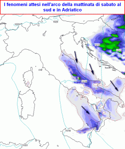 Al sud tempo in peggioramento con rovesci sparsi e locali temporali a partire da Campania e Molise, in estensione alle rimanenti zone nel corso della giornata. Temperature in diminuzione, sensibile dalla sera.