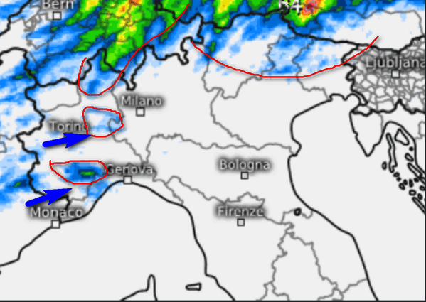 Vediamo dove si concentreranno i temporali al nord tra le 14 e le 20 di giovedi 26 giugno: