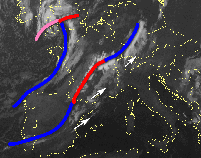 Vediamo tutto tramite l’ultima immagine satellitare delle 7.30 a scala europea: