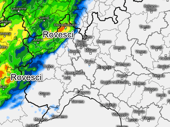 I temporali agiranno al nord-ovest tra la serata e la successiva notte. La cartina mostra rovesci e qualche temporale su ovest Alpi, Val d’Aosta e Val d’Ossola, al limite fino al Canavese. Le altre regioni saranno ancora in attesa.