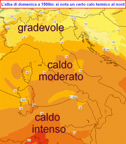 EVOLUZIONE: l’instabilità si rinnoverà nella giornata di domenica con qualche temporale a carattere sparso, in un contesto un po’ meno caldo al nord, sempre piuttosto caldo procedendo verso sud.