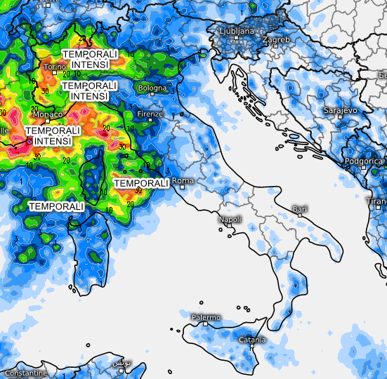 Secondo l’elaborato europeo, potremo assistere alla prima ondata temporalesca organizzata che interesserà soprattutto la Val d’Aosta, il Piemonte, la Liguria e parte della Lombardia, specie la parte centro-occidentale della regione. Temporali anche al centro, specie lungo le coste della Toscana, la zona dell’arcipelago fino ad arrivare alle porte dell’alto Lazio. Temporali possibili anche nel nord della Sardegna, per il resto fenomeni meno probabili.