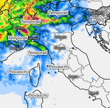 Temporali dalla mattinata su Valle d’Aosta e Piemonte, in spostamento verso la Lombardia dal primo pomeriggio, più probabili in prossimità delle zone montuose, ma localmente anche in pianura. Possibili temporali isolati anche in Liguria. Poi verso sera estensione dei rovesci di pioggia o temporali su Alto Veneto e Trentino. e dalla notte sul Friuli, Corsica, nord Sardegna e coste della Toscana, per il resto assenza di fenomeni e temperature in aumento sulle regioni meridionali.