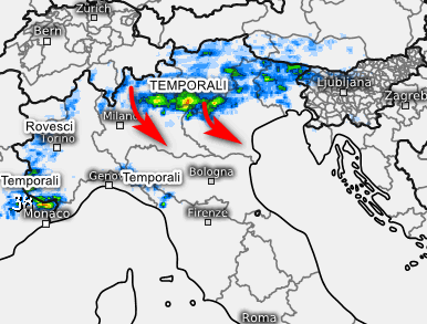 Temporali tra alto Veneto, Trentino, Friuli, nord-est Lombardia, Alpi-occidentali / marittime, Appennino Ligure orientale. Possibili rovesci anche tra Val d’Aosta orientale, Sesia e Ossola, ma fenomeni più isolati e sporadici. In pianura nessun fenomeno fino al calare del sole; successivamente avremo probabili sconfinamenti temporaleschi tra la Lombardia e il Veneto; sempre dopo il calare del sole, si attenueranno i temporali sui rilievi.