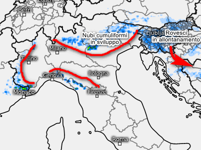 I rovesci che al momento stanno interessando il Friuli orientale, si sposteranno verso levante. Con l’incedere del soleggiamento avremo lo sviluppo di cumuli imponenti sulla fascia prealpina centrale ed orientale con i primi rovesci dopo mezzogiorno. Aumento dell’attività cumuliforme anche sulle Alpi Marittime, Appennino Ligure orientale e Tosco-Emiliano; sul resto del settentrione e della Penisola tempo soleggiato.