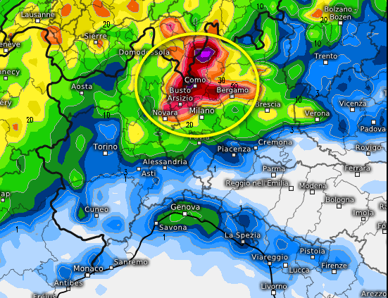 MASSIMA ATTENZIONE tra Novarese, Milanese, Comasco, Varesotto, Bergamasco e Canton Ticino. Qui sono attesi temporali molto intensi, con grandine, molte fulminazioni e colpi di vento. In prossimità della fascia pianeggiante lombarda saranno possibili temporali a supercella, con moti vorticosi al loro interno.
