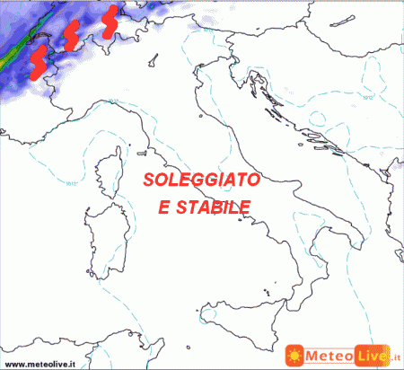 C’è davvero poco da dire: fatta eccezione per qualche temporale nel pomeriggio sulla Val d’Aosta, il tempo sarà stabile, soleggiato e caldo su tutta l’Italia.