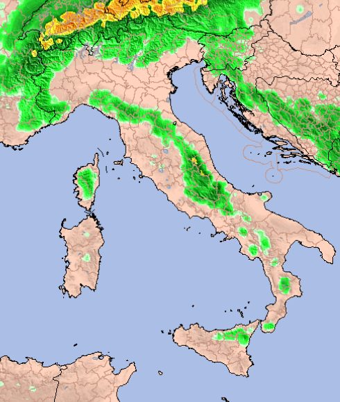 SUD fin dal mattino nubi sparse con rovesci tra Campania e basso Tirreno, dal pomeriggio molte nubi cumuliformi con rovesci e temporali sparsi associati a locali grandinate. Fenomeni meno probabili sulle Isole Maggiori.