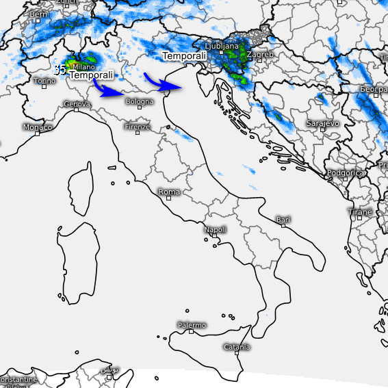 Temporali anche intensi ed accompagnati da grandine saranno possibili tra est Piemonte, Lombardia e Veneto occidentale., specie in pianura. Qualche rovescio o temporale anche sul resto del Piemonte, in sconfinamento attenuato verso l’Appennino Ligure.