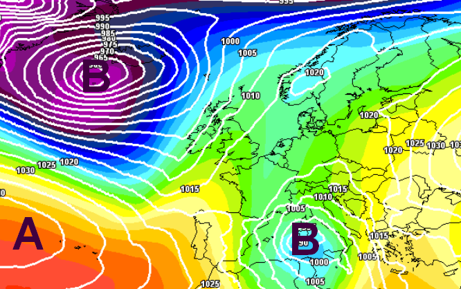 Altro ciclone in arrivo al nord dal tardo pomeriggio di domenica, in lento movimento verso la Sardegna nei giorni successivi.