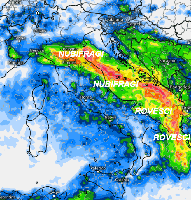 Purtroppo, le piogge intense seguiteranno ad abbattersi sulle medesime aree, ovvero tra la Romagna e le marche. MASSIMA ATTENZIONE IN QUESTE DUE REGIONI, in quanto i terreni saranno ormai saturi di pioggia. Piogge e rovesci di un certo peso colpiranno anche la restante costa adriatica fino alla Puglia. Sul resto d’Italia precipitazioni più sporadiche, ma ovviamente non escluse.