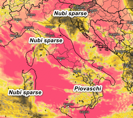 Sarà una giornata con belle schiarite e nubi sparse qua e la che tra la Campania e la Calabria Tirrenica daranno luogo a qualche piovasco.