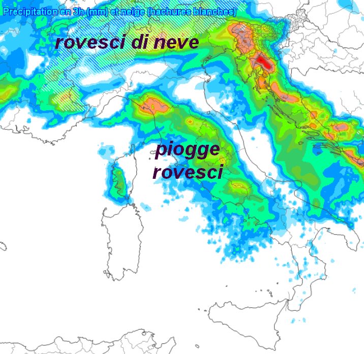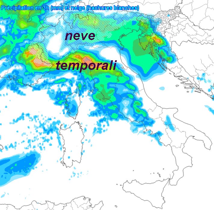 Al nord la presenza di una sacca d’aria fredda residua potrebbe favorire qualche nevicata anche a bassa quota tra Lombardia, Veneto occidentale, fondovalle trentino, basso Piemonte orientale, Piacentino, così come evidenzia il modello ICON (è della stessa idea anche Arpège) mentre sono più scettici gli altri modelli ad area limitata.