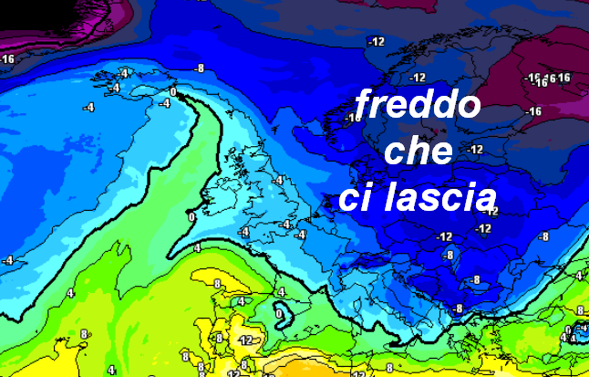 Italia divisa in due sino a mercoledì con aria fredda al nord e generale mitezza al centro e al sud, poi transito di un fronte con annesse precipitazioni, che al nord potranno risultare nevose localmente anche a quote basse, poi parentesi fredda per tutti prima dell'arrivo dell'anticiclone.