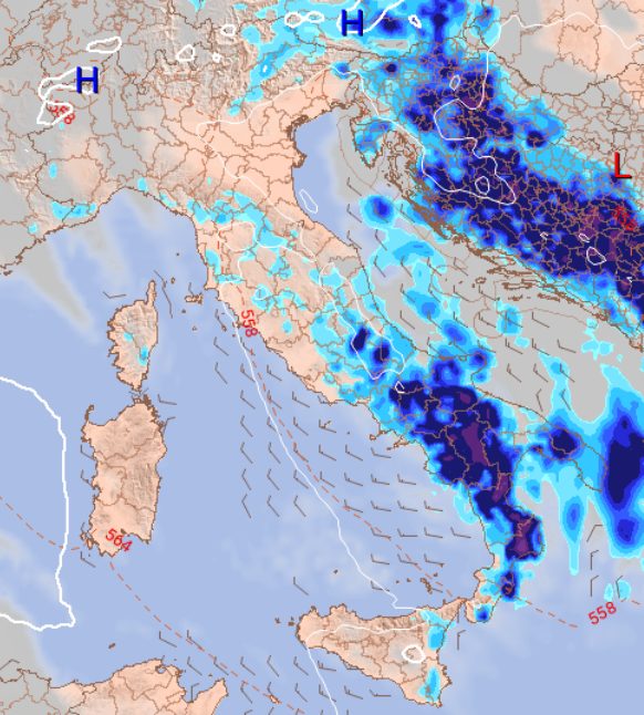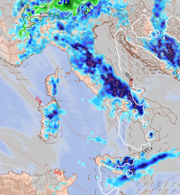 Ed ecco il pomeriggio del giovedì, con fenomeni estesi a gran parte del nord e marginalmente alla Toscana: