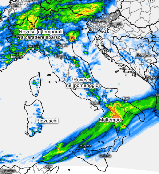 Passiamo adesso alle piogge attese in Italia nell’arco della giornata di venerdi 9 maggio: