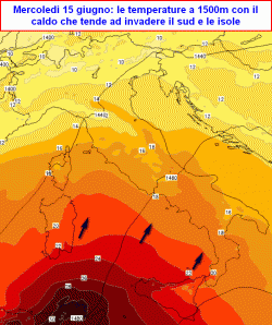 CALURA: i picchi dovrebbero registrarsi al sud e sulle isole tra giovedì e sabato con valori che potrebbero localmente raggiungere i 40°C, specie su Sicilia e Puglia, 36-37°C sul resto del sud e in Sardegna, 34-35°C su Lazio ed Abruzzo, valori inferiori sul resto del centro e solo una fiammata calda sull’Emilia-Romagna al nord.