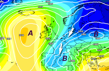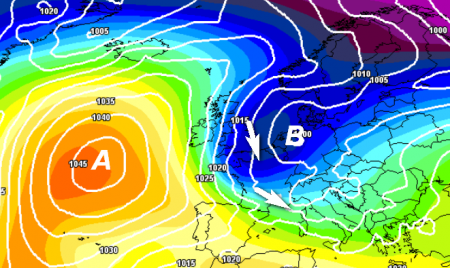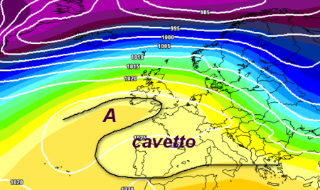 E’ la soluzione più difficile (e al momento anche quella con la minore attendibilità) ma anche la configurazione barica che in alcuni inverni si è riscontrata proprio a fine febbraio, riportando anche la neve in pianura: