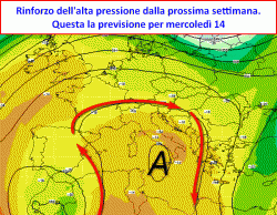 PROSSIMA SETTIMANA: con l’arrivo della nuova settimana, ormai tutti i modelli a nostra disposizione confermano il rinforzo di una figura altopressoria che segnerà un generale stop alla lunga fase di tempo perturbato che condiziona il nostro Paese ormai da molti giorni, lasciando dietro di sè una scia interminabile di danni che ammontano a svariati milioni di euro.