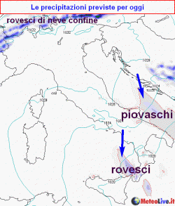 Entra aria fredda lungo l'Adriatico e sul meridione con possibili nevicate sino a quote collinari dalla prossima notte sino all'alba di martedì. Tempo migliore altrove. Tra mercoledì e venerdì nuvolaglia tra nord e regioni tirreniche con qualche pioggia possibile. In seguito parziale rimonta anticiclonica e bel tempo sino a domenica 11.