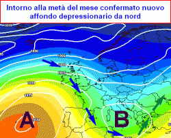 –tra mercoledì 7 e venerdì 9 una blanda depressione si inserirà nel Mediterraneo provocando annuvolamenti al nord e al centro con qualche precipitazione su Liguria e regioni centrali tirreniche.