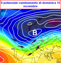 L'anticiclone africano sulla carta fa pensare a temperature al suolo anche di 26°C, ma le inversioni termiche e la formazione di nebbia potrà anche provocare l'effetto opposto: cioè freddo umido e valori non superiori ai 10°C sul catino padano e in alcune valli del centro. Da metà mese la nuova emissione del modello americano conferma un cambiamento del tempo.