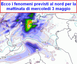 FREDDO e NEVE: le temperature ancora basse che si registrano sul settore alpino e l’arrivo di questo fronte freddo determineranno ulteriori brevi nevicate sin verso i 1600m nella giornata del Primo Maggio ma con limite anche più basso localmente e nei rovesci più intensi.