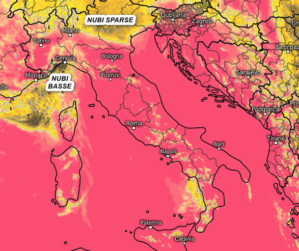Un po’ di nubi sparse al nord anche di tipo basso sulla Liguria, ma senza fenomeni. Sul resto d’Italia sarà una bella giornata di sole a parte qualche nube qua e la senza conseguenze.