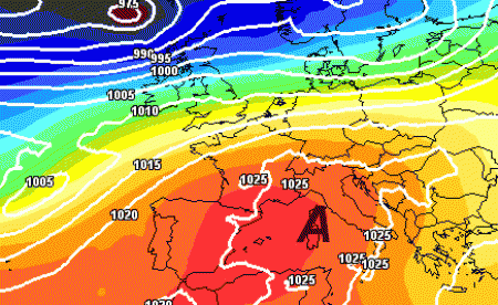 RIMONTA DELL’ANTICICLONE: da giovedì 29 sino ai primi giorni di novembre anticiclone in rimonta sull’Italia con tempo nel complesso buono e mite. Qualche passaggio nuvoloso e la presenza di locali nebbie sulle pianure non disturberanno un periodo tranquillo, almeno a livello atmosferico. E’ chiaro che si creeranno nuovamente le condizioni per l’accumulo di sostanze inquinanti nelle grandi aree urbane. Qui sotto la mappa che testimonia il ritorno dell’alta pressione prevista per venerdì 30 ottobre: