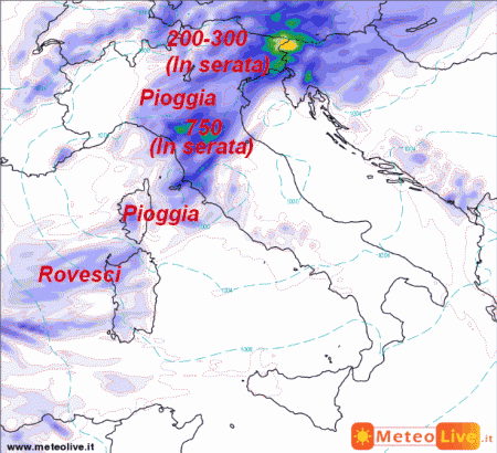Vediamo intanto la previsione per la giornata odierna in Italia:
