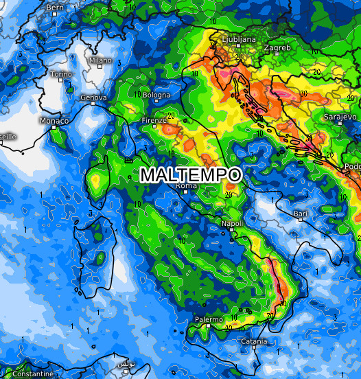 Infine, queste sono le precipitazioni attese in Italia nell’arco della giornata di venerdi 20 dicembre: