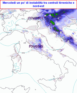 Sull'Italia insiste un flusso di correnti debolmente cicloniche che determinano annuvolamenti irregolari e qualche breve precipitazione, che mercoledì si localizzerà tra nord-est e regioni centrali tirreniche. Venerdì possibile passaggio temporalesco più diffuso al centro, ma da confermare, per il resto variabile sino a domenica: addirittura non escluso l'affondo di una nuova goccia fredda nel Mediterraneo durante il fine settimana con temporali e fresco!
