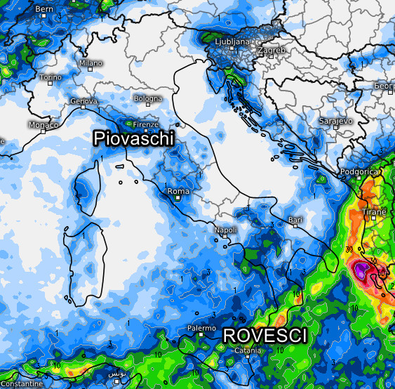 Infine, queste sono le piogge attese in Italia nell’arco della giornata di mercoledi 29 gennaio: