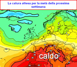 CALDO: oggi giornata gradevole con massime difficilmente superiori ai 32°C sull’insieme del territorio. Sabato caldo moderato, più intenso nei fondovalle alpini. Domenica condizioni simili con qualche punta però di 34-35°C. Da lunedì progressivamente più caldo e punte anche over 37°C tra martedì e giovedì.