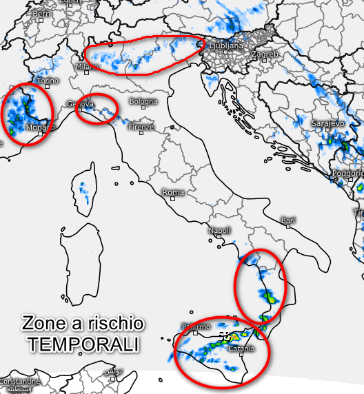 Ancora temporali tra la Sicilia e la Calabria Tirrenica, ma in via di attenuazione. Temporali fra Valle d’Aosta e Alpi Piemontesi occidentali, anche nel comparto delle Alpi Liguri e sull’Appennino Ligure orientale, possibili sconfinamenti su parte della pianura piemontese nella successiva notte. Su tutte le altre regioni soleggiato e caldo, ma con tendenza temporalesca in serata su est Lombardia.