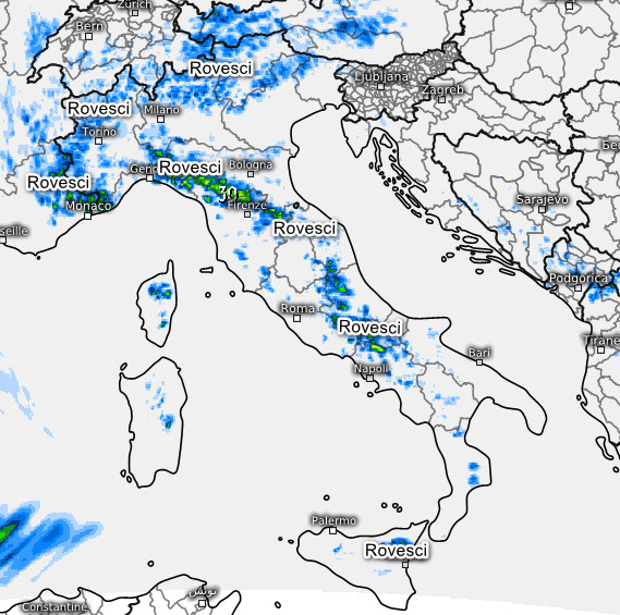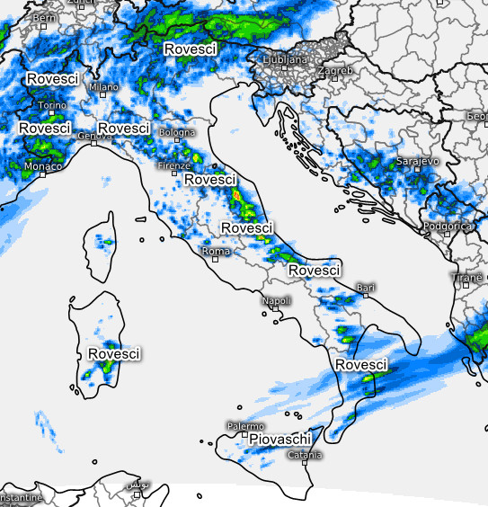 Al nord rovesci in mattinata tra alto Piemonte ed alta Lombardia, in temporanea attenuazione attorno al mezzogiorno. Piovaschi in Liguria in trasferimento dalla fascia costiera alle aree interne (fenomeni locali). Rovesci dopo mezzogiorno anche lungo la dorsale appenninica centro-settentrionale, mentre piogge sparse interesseranno le estreme regioni meridionali, segnatamente la Calabria. Su tutte le altre regioni tempo asciutto e soleggiato.