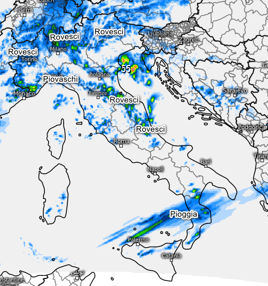Queste invece sono le piogge attese in Italia tra le 14 e le 20 di venerdi 9 maggio:
