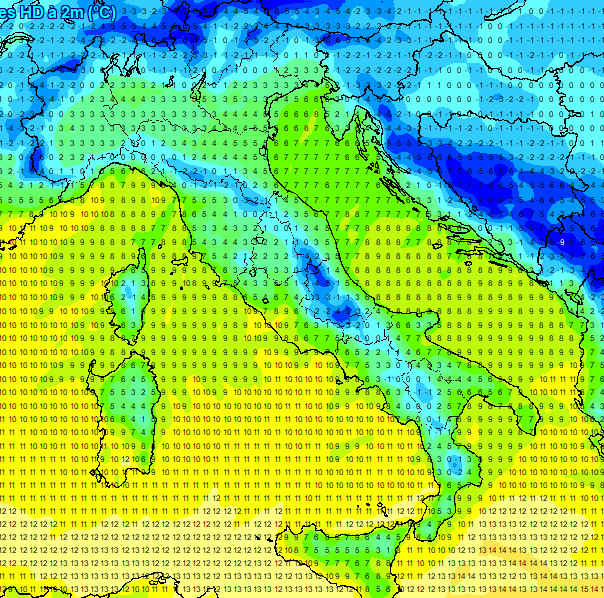 Sul fronte delle temperature, questi sono i valori attesi in Italia alle ore 15 di martedi 14 gennaio – si consiglia di ingrandire l’immagine per avere un migliore riscontro visivo: